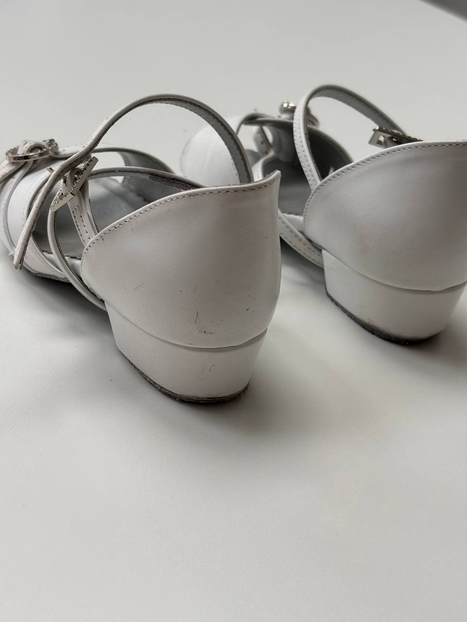Get your little dancer ready for competitions with these beautiful International Dance Shoes “Girls Natasha” in White, designed especially for young ballroom dancers. With a comfortable 1.25″ Cuban heel (3.2cm) and a secure fit, these shoes provide excellent support and stability for training and performances.