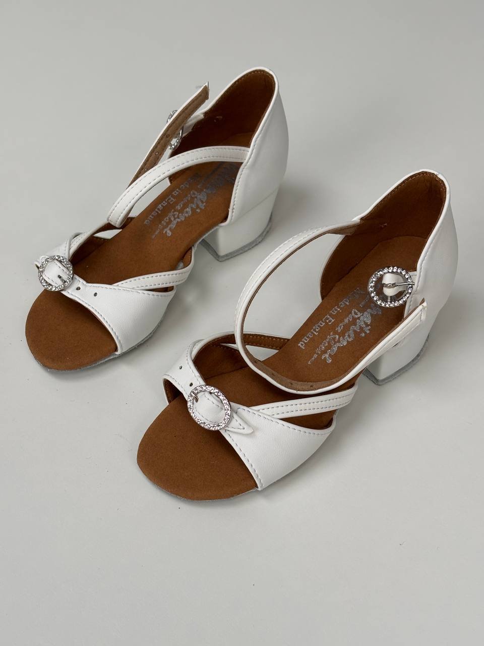 Get your little dancer ready for competitions with these beautiful International Dance Shoes “Girls Natasha” in White, designed especially for young ballroom dancers. With a comfortable 1.25″ Cuban heel (3.2cm) and a secure fit, these shoes provide excellent support and stability for training and performances.